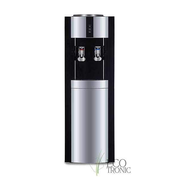 Кулер "Экочип" V21-LN black+silver. Бюджетный аналог классической модели Ecotronic Н1. Напольный кулер без охлаждения. Цвет черный с серебристой вставкой. Тип кранов подачи воды - "Нажим кружкой". Бак нагрева 1,1 л, неразборный.